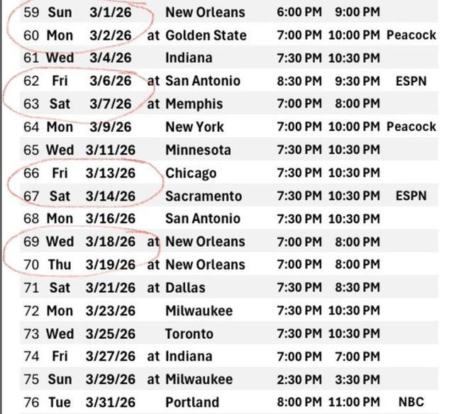 直播吧8月15日讯 NBA新赛季赛程今日公布,船记Law Murray吐槽了球队在三月份的紧张赛程。