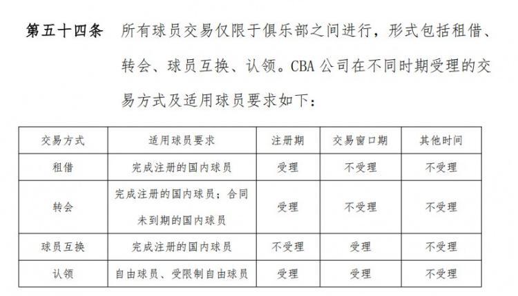 新赛季CBA设立有注册期(8月1号到31号)和交易窗口期,但在交易窗口期是不受理租借和转会的,只能做球员互换和自由球员认领这两个操作。